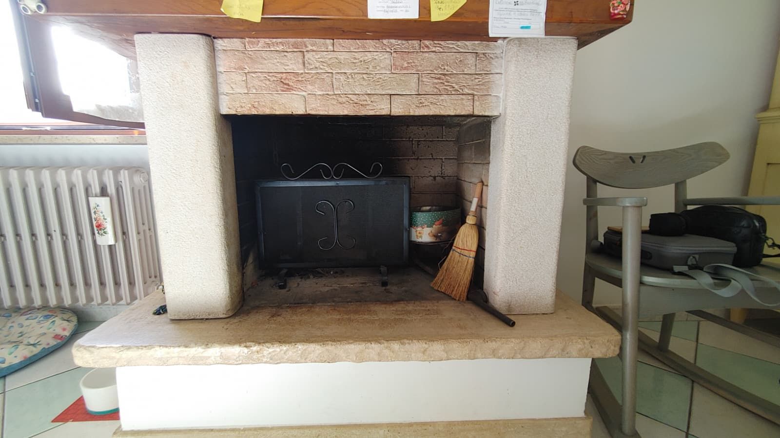 Al piano primo: ingresso, sala, cucina abitabile con camino, una camera, un servizio con doccia e un terrazzo perimetrale.