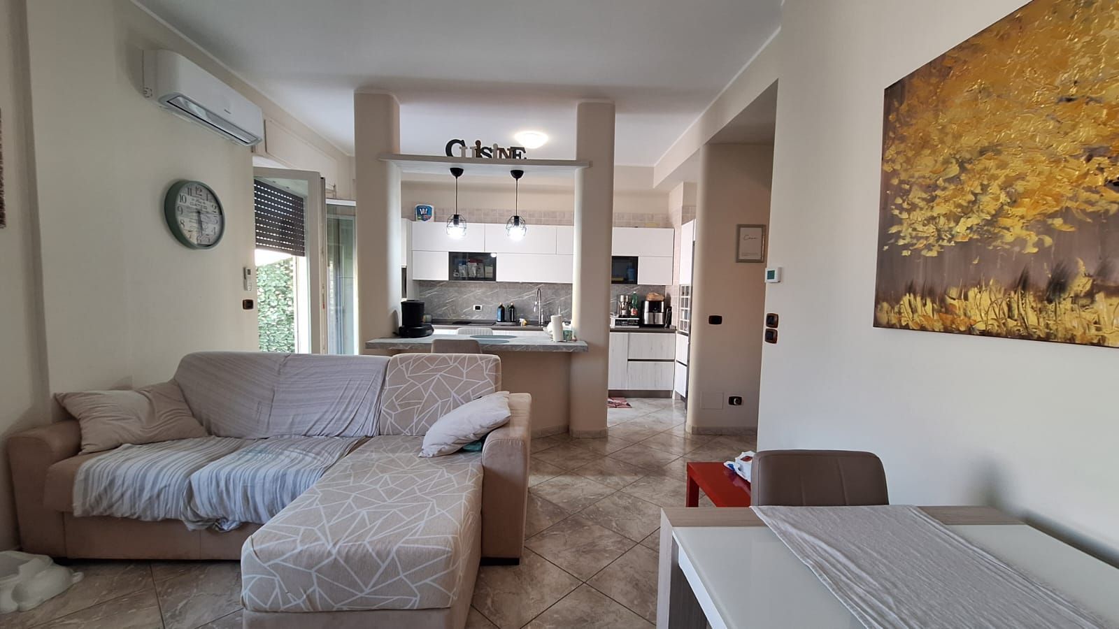 Montesilvano - zona Villa Verrocchio e precisamente in via Lanciano, a 300 mt dal mare, appartamento di 90 mq al primo piano di una piccola palazzina (senza ascensore) così composto; ingresso, ampio e luminoso soggiorno con angolo cottura, camera matrimoniale, cameretta e doppi servizi entrambi con doccia. Balcone perimetrale con doppio affaccio. L'appartamento gode di ottime rifiniture interne ed è completamente ristrutturato, dotato di riscaldamento autonomo, aria condizionata, zanzariere, infissi in triplo vetrocamera in pvc ed autoclave. Ideale sia come investimento per la sua vicinanza al mare che ad uso residenziale abituale.